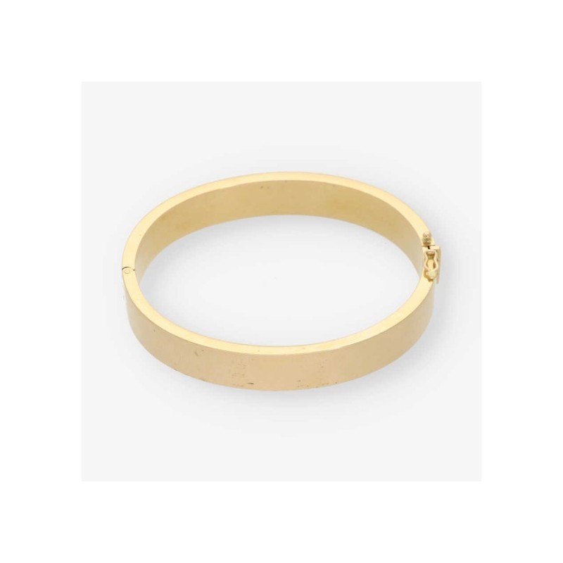 Pulsera esclava fabricada en plata de 1ª ley 925mls y con baño de oro amarillo . Medidas : Ancho 6,00mm Grueso 3,50mm