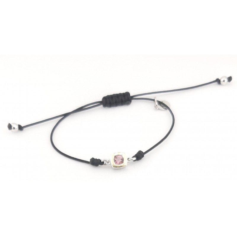 Pulsera de macramé con motivo fabricado en plata de 1ª ley 925mls, oro de 18k 750mls pulido y turmalina rosa . Una pieza moderna que combina con todo.
