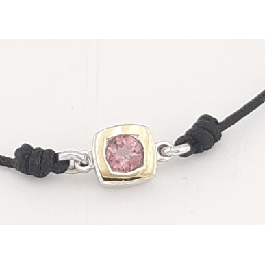Pulsera fabricada en plata, oro de 18k y turmalina rosa