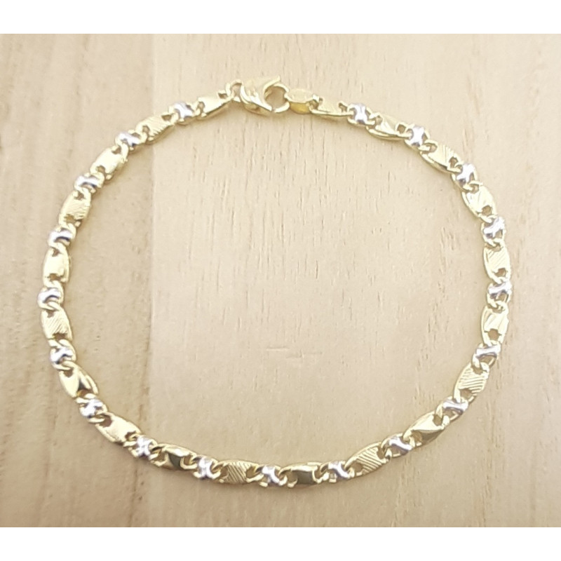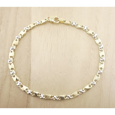 Pulsera para mujer en oro bicolor de 1ªley 18ktes 750mls , pulsera compuesta en mallas diferentes tamaño , largo 19,50 cm .Ancho de la malla 3,60mm