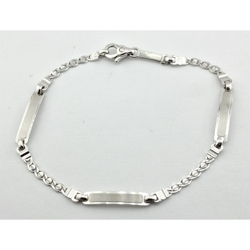 Pulsera para mujer en oro blanco de 1ª ley 18kilates 750mls , pulsera con tres placas rectangulares para grabar medida de las placas 16,50x3,70mm ,Largo total 18cms.Cierre con mosquetón.