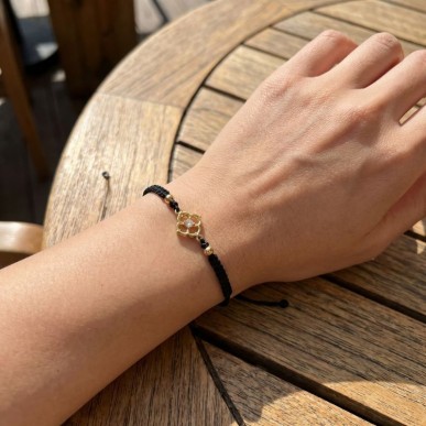 Pulsera del conjunto ALBA fabricada en oro amarillo de 9 quilates y macramé, engastada con un diamante de laboratorio talla brillante redondo de 3 mm.