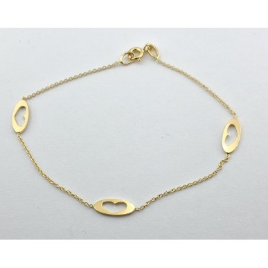 Pulsera para mujer en oro amarillo de 1ª ley 18kilates 750mls , pulsera con tres corazones calados y cadena forzada ,Largo total 17,50cms cierre con reasa..