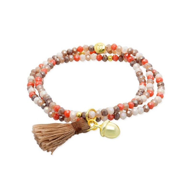 La colección de pulseras Zen se realiza artesanalmente en Plata de Ley (925) con baño de Oro de 18 Kt. o con baño de Rodio y Cristal de Strass. Esta pulsera de diseño elástico puede ser utilizada como tobillera y gargantilla