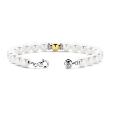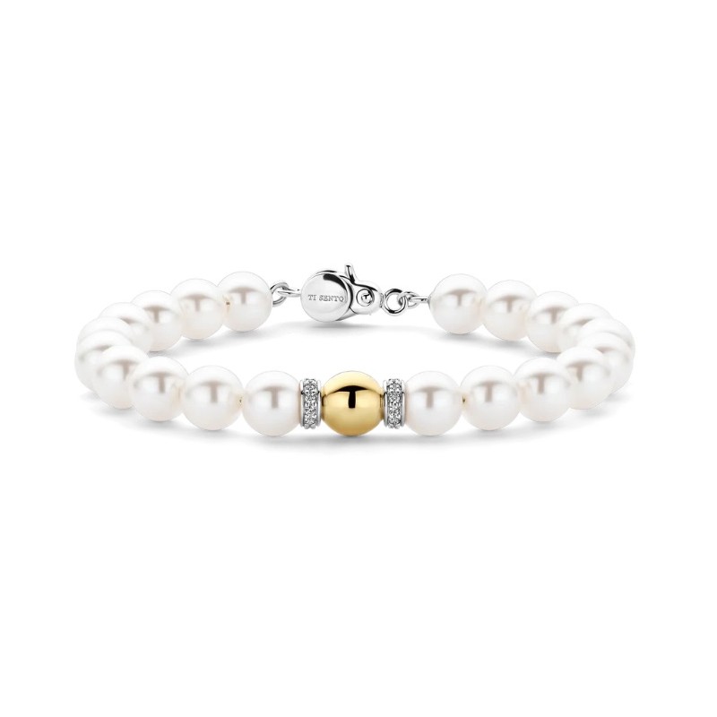 Acerca de esta joya Disfruta de la suavidad luminosa con la pulsera TI SENTO 23088YP de plata chapada en oro. Los eslabones de plata de ley 925 pulida están chapados en oro amarillo radiante y adornados con perlas blancas de 8 mm engastadas en cabujón, cuyo brillo natural capta la luz. Un cierre refinado reproduce la curva fluida de cada perla, lo que garantiza seguridad y un estilo impecable. Combínala con cadenas delgadas para una riqueza en capas o úsala sola como un toque de elegancia sin esfuerzo. Sin níquel e hipoalergénica, promete una comodidad sin esfuerzo durante todo el día