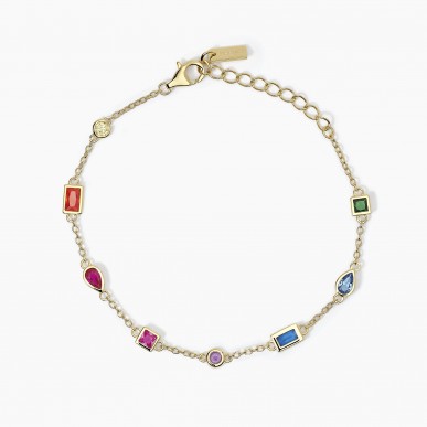 Descripción del Producto Pulsera multicolor para mujer en plata bañada en oro de 18 quilates con cadena tipo cable y engastes de diferentes tallas. • Cierre de mosquetón • Talla ajustable, largo de 16 a 19 cm • Material: plata 925, circonitas • Acabado: baño de oro de 18 quilates