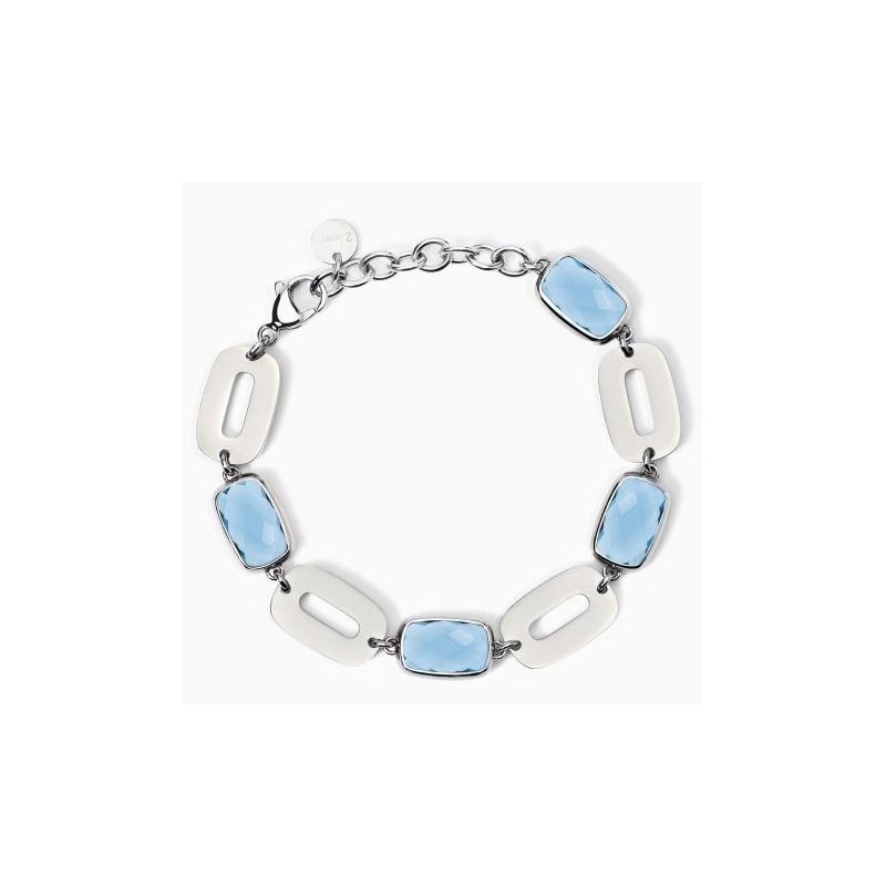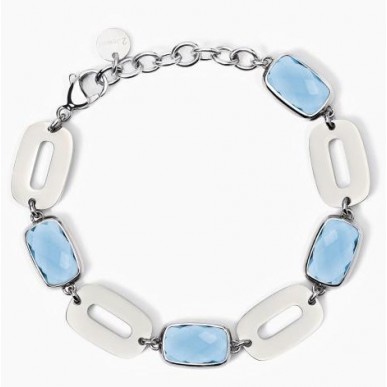 Pulsera de acero 316L y piedras de vidrio colección Diva con elementos de 18x11,5 mm y 16x11 mm con cristal facetado azul, longitud ajustable de 17 a 20 cm
