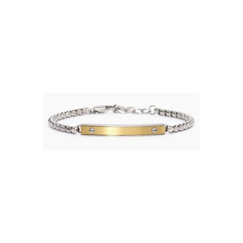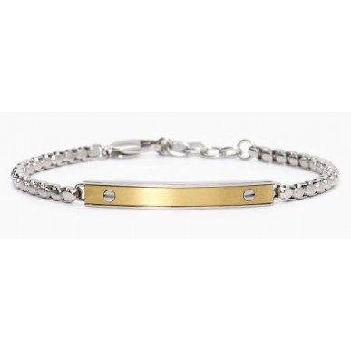 Pulsera de acero 316L con cadena veneciana 3.5 mm, chapa central pulida y con PVD dorado satinado 40x5.5 mm, longitud ajustable de 19 a 21 cm