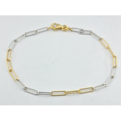 Pulsera para mujer en oro amarillo y oro blanco de 1ª ley 18kilates 750mls , pulsera con mallas rectangulares en bicolor ,Largo total 18,50cms cierre con mosquetón..