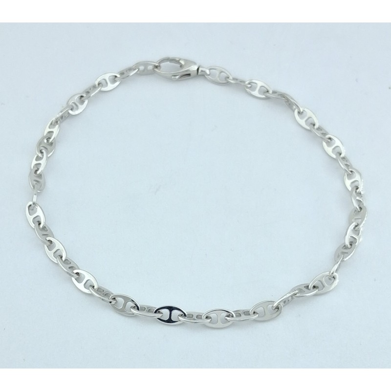 Pulsera para mujer en oro oro blanco de 1ª ley 18kilates 750mls , pulsera con eslabones modelo ancla ,Largo total 18,00cms cierre con mosquetón..