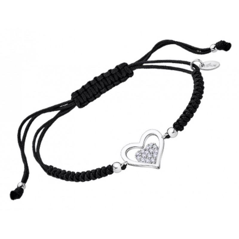 Pulsera de plata de la marca Lotus Silver doble corazón LP3124-2/2 de plata de primera ley de 925 mls con circonitas. Con hilo de nylón negro ajustable a la medida de la muñeca.
