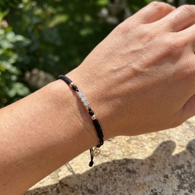 Pulsera del conjunto MONOLITE fabricada en oro amarillo de 9 quilates y macramé, engastada con seis diamantes de laboratorio talla brillante redondo de 2,25 mm.con un peso total de 0,30quilates