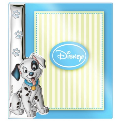 Portafotos infantil con adornos de Disney Dalmata ,revestido en plata con tecnología PVD conforme a la normativa de ley vigente, y plexiglas