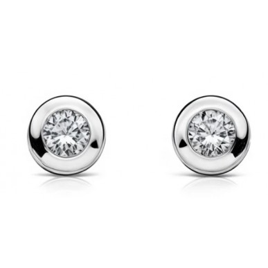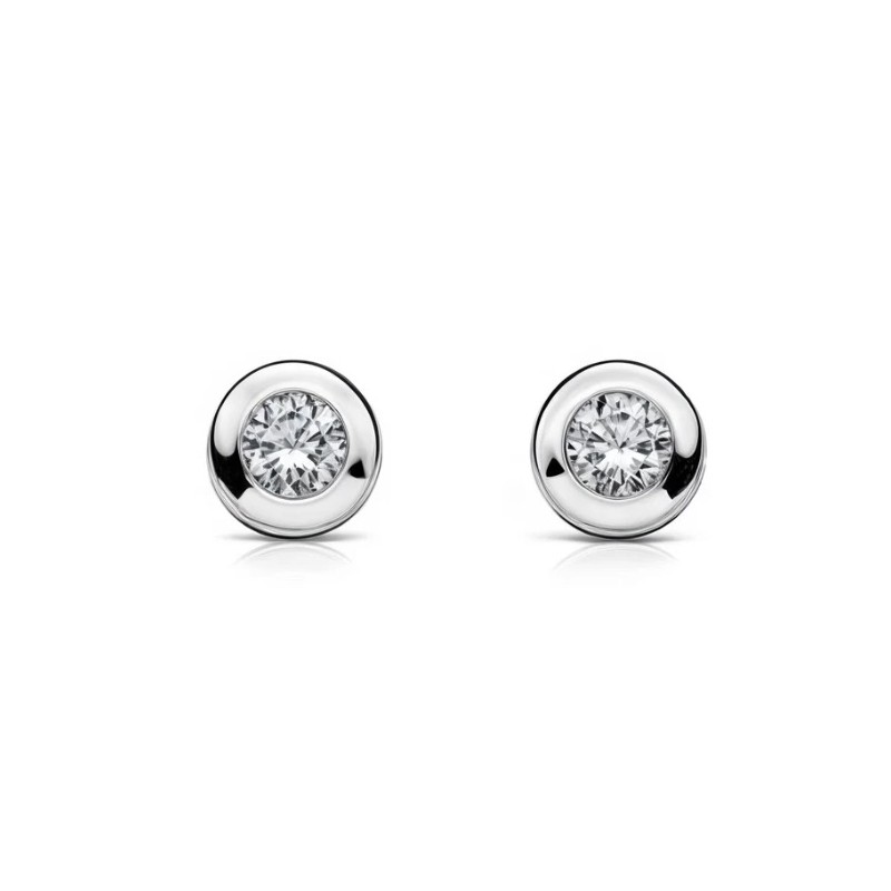 Pendientes para bebé en oro blanco de 1ª ley 18ktes 750 mls , modelo chatón liso con circonita blanca de 4,78mm de diámetro y cierre en rosca , para la primera puesta.