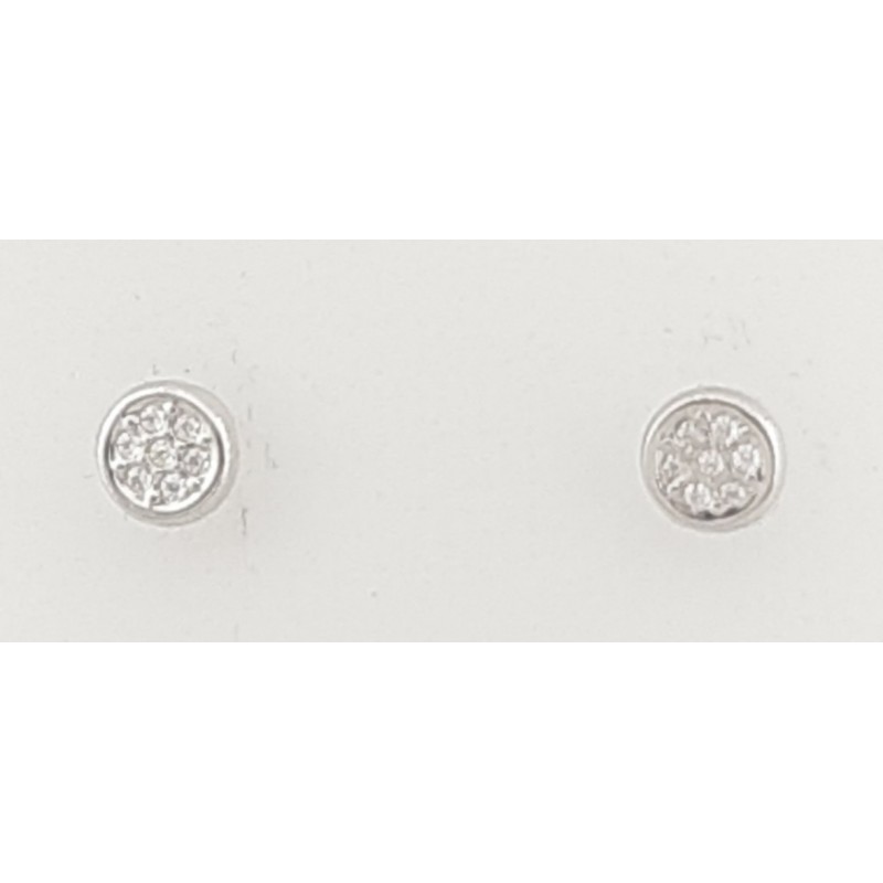 Pendientes en oro blanco de 1ª ley 18kilates 750mls , pendientes en circulo de 4,50mm de diámetro con circonitas engastadas en pave , cierre a rosca.