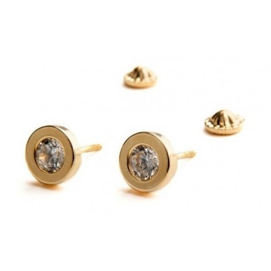 Pendientes para bebé en oro amarillo de 1ª ley 18ktes 750 mls , modelo chatón liso con circonita blanca de 5,50mm de diámetro y cierre en rosca .