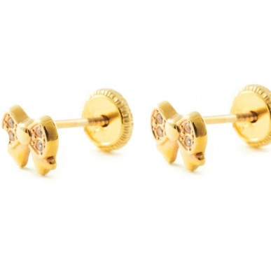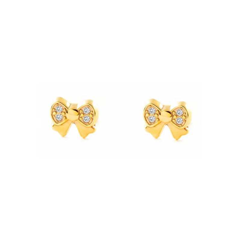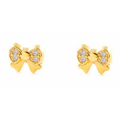 Pendientes en oro amarillo de 1ª ley 18kilates 750mls , pendientes en forma de lazo de medida 4,90x6,00mm con circonitas engastadas en pave , cierre a rosca.