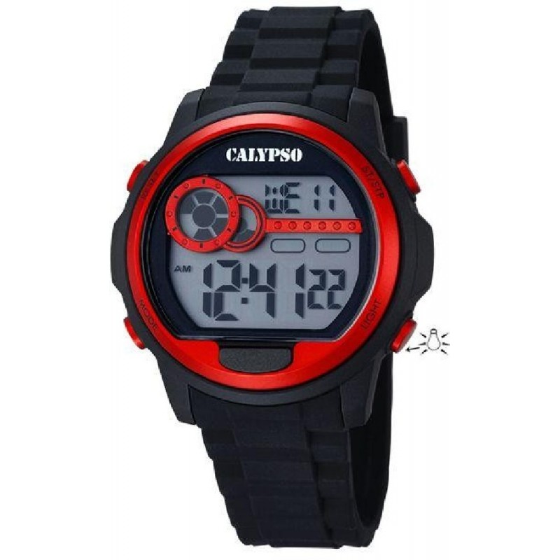 Reloj Calypso Color Splash K5667/2 digital para hombre con movimiento de cuarzo y resistencia al agua de 100 metros. Se incluye estuche oficial de la marca y con toda la documentación pertinente.Garantia de 2 años. Para Hombre Movimiento Cuarzo Digital Tipo de correa Silicona Tipo de cristal Plexiglass Diámetro de la caja 43.00 mm Resistencia al agua (metros) 100 Color del dial Negro/rojo Color de la correa negra Color caja Negro/rojo Características Hora, Alarma, Calendario, Cronógrafo,Doble horaio , luz.