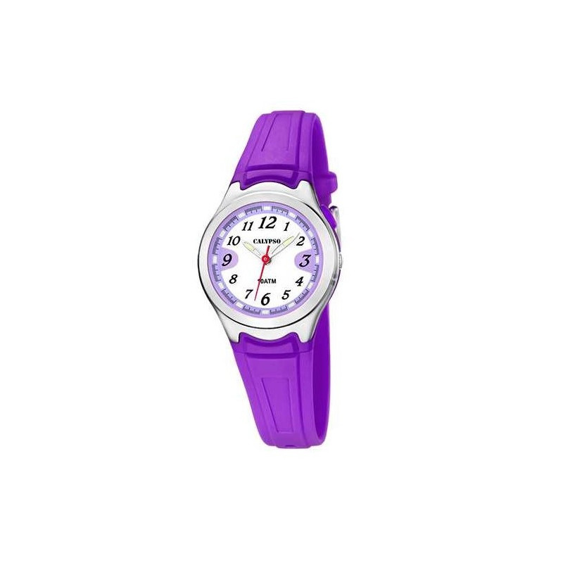 Reloj Calypso Street Style K6067/2 analógico para mujer / niña con movimiento de cuarzo, correa de caucho y resistencia al agua de 100 metros. Se incluye estuche oficial de la marca y con toda la documentación pertinente. Garantia de 2 años Para Mujer/Niña Movimiento Cuarzo Analógico Tipo de correa Caucho Tipo de cristal Plástico Diámetro de la caja 28 mm Resistencia al agua (metros) 100 Ancho correa 16 mm Color del dial Plateado Color de la correa Negra Color caja Plateado/Lila Luz en el dial Si