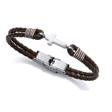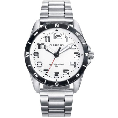 Reloj - Pack de Niño Viceroy Next con reloj tres agujas con caja de acero y correa de malla en acero, esfera blanca con números arabes y con bisel en color gris y pulsera de piel tenzada en marrón con cruz en acero pulido.