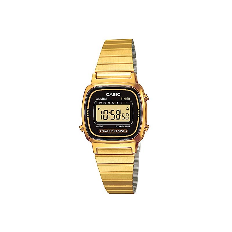 Color oro y negro - una combinación que no sólo es sinónimo de buen gusto, sino que también combina con muchas ropas diferentes. Este reloj de mujer CASIO sabe cómo darse a conocer gracias, entre otras cosas, a materiales punteros como caja de resina y correa ajustable hecha de acero inoxidable. Un reloj para ser usado en la muñeca, no en el bolsillo.