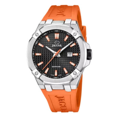 El JAGUAR J1010/1 es un reloj de cuarzo con un movimiento RONDA 705 fabricado en Suiza, un mecanismo de calidad y precisión contrastadas durante años , e indica con una gran fiabilidad las horas, minutos y segundos.Viene equipado con una correa de caucho de color naranja y con un cierre de hebilla clásica, un sistema de cierre ideal para una correa de cuero que asegura que el reloj permanecerá en su sitio en todo momento.