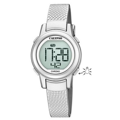 Reloj Calypso K5736/1 digital para mujer/niña con movimiento de cuarzo, correa de caucho y resistencia al agua de 50 metros. Se incluye estuche oficial de la marca y con toda la documentación pertinente. Garantia de 3 años Para Mujer/Niña Movimiento Cuarzo Digital Tipo de correa Caucho Tipo de cristal Plexiglass Diámetro de la caja 28 mm Resistencia al agua (metros) 50 Ancho correa 15.00 mm Color del dial Gris Color de la correa Blanca Características Hora, Alarma, Calendario, Cronógrafo,Doble horaio , luz.