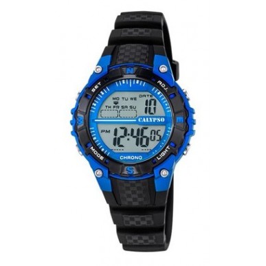 Reloj Calypso Hombre K5684/5 Sport Azul. Caja bicolor negra y azul de silicona de 38mm de diametro. Correa de silicona negra. Pantalla digital. Cronógrafo. Cronómetro. Calendario. Sumergible 100m. 3 años de garantía. Ref K5684/5