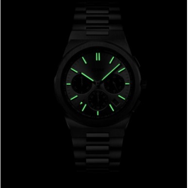 Masculino y multifuncional. Este sofisticado reloj Vigoureux Chrono para hombre tiene una correa integrada de acero inoxidable plateado de 24 mm, caja plateada cepillada y pulida de 40 mm y una esfera plateada con tres subesferas negras y taquímetro negro. Un reloj deportivo de extraordinaria calidad, atractivo visual y un tema de conversación por excelencia.
