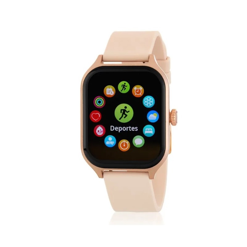 Reloj Marea Smartwatch B63004/8 Sport Beige. Caja de plástico color beige de 45x38mm. Correa de silicona color beige. Cierre de hebilla. Esfera negra. Multifunción, Contador de pasos, calorías y distancia recorrida Establecer meta de pasos Modo no molestar Monitoreo de sueño Frecuencia cardiaca Prueba automática de frecuencia cardiaca Oxígeno en sangre Guía de respiración Ciclo menstrual Modo deporte Recordatorio sedentario Notificaciones (redes sociales, email, llamadas, etc) Llamadas Bluetooth Asistente por voz Alarmas Cronógrafo Cuenta regresiva Clima Calendario Reloj mundial Control remoto música Control remoto cámara Juegos Bolsa de valores Elegir y personalizar pantalla de inicio Anti-pérdida Modo mesita de noche Bloqueo por contraseña Modo pantalla siempre encendida Encontrar teléfono Encender pantalla al girar muñeca. Pantalla táctil: 1.9 pulgadas. Batería: 260 mAh Duración 5 días, puede ser más según uso. Material Brazalete: Acero. Impermeabilidad: IP68. Ref B63004/8