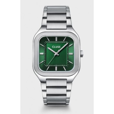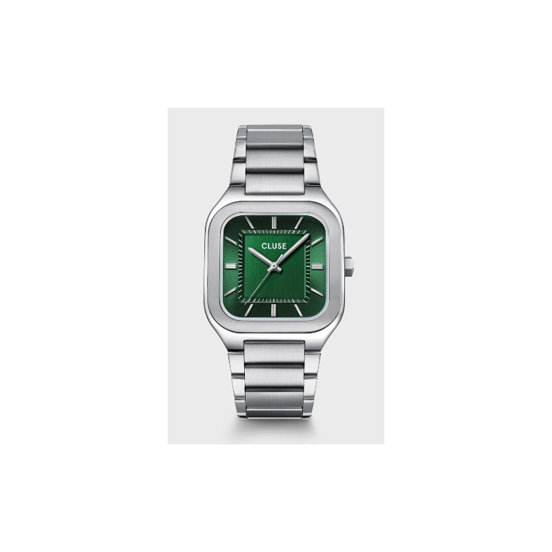 El reloj cuadrado Quadrus para hombre cuenta con una caja de color plateado de 35 mm, esfera de color verde y correa de acero inoxidable de color plateado de 20 mm.