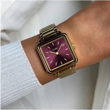 La Tétragone Watch Steel, Wine stones, Gold Colour