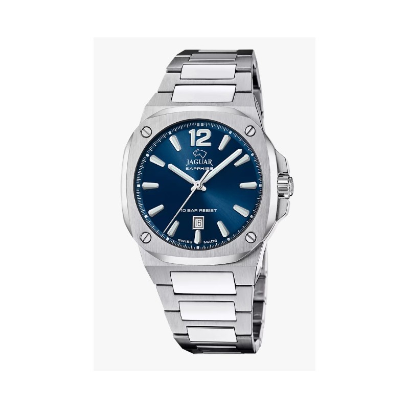 El modelo J1024/1, de color Azul, con esfera Azul e índices de color Plateado, ofrece una visualización perfecta gracias a su cristal de Zafiro.