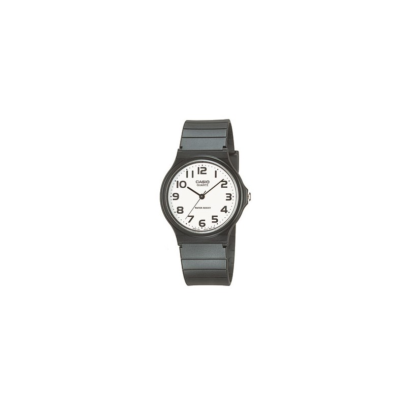 Género unisex Tipo de cierre Hebilla Colección Casio Collection Garantía Oficial de 3 años Material de la caja Resina Diámetro de la caja 33,60 mm Cristal Acrílico Esfera De color blanca Material de la correa Resina Color de la correa De color negro Resistencia al agua No sumergible Funciones Analógico