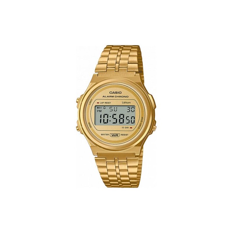 Descripción Luz LED Para iluminar la esfera del reloj se usa un diodo emisor de luz (LED). Cronómetro – 1/100 seg. – 1 hora El tiempo transcurrido, los tiempos parciales y el tiempo final se miden con una precisión de centésimas de segundo. El reloj tiene capacidad para cronometrar hasta una hora. Alarma diaria La alarma diaria emite una señal acústica en el momento programado para recordar aquellos acontecimientos que se repiten diariamente. Calendario automático Una vez ajustado, el calendario automático muestra siempre la fecha correcta. Indicación de hora normal de 12/24 horas Las horas se visualizan ya sea en el formato de 12 o 24 horas. Cristal acrílico El acrílico es fácil y relativamente irrompible. Caja de resina La caja de resina es el compañero ideal para cada día. Es duradera, ligera y relativamente insensible al frío, calor u otras influencias externas. Correa de acero inoxidable Robusta, resistente y elegante. La correa de acero inoxidable es un clásico para relojes. Cierre ajustable El cierre se puede ajustar individualmente de forma sencilla para proporcionar la máxima comodidad. 7 años – 1 pila La pila proporciona al reloj la energía necesaria durante aprox. 7 años Clasificación de resistencia al agua (WR) según ISO 22810 Este modelo es resistente al agua según DIN 8310 o ISO 22810 y soporta pequeñas salpicaduras de agua. Deberá evitarse cualquier mayor contacto con el agua. Dimensiones (A x A x P) 38,8mm x 36,6mm x 9,2mm Garantia de 3 años